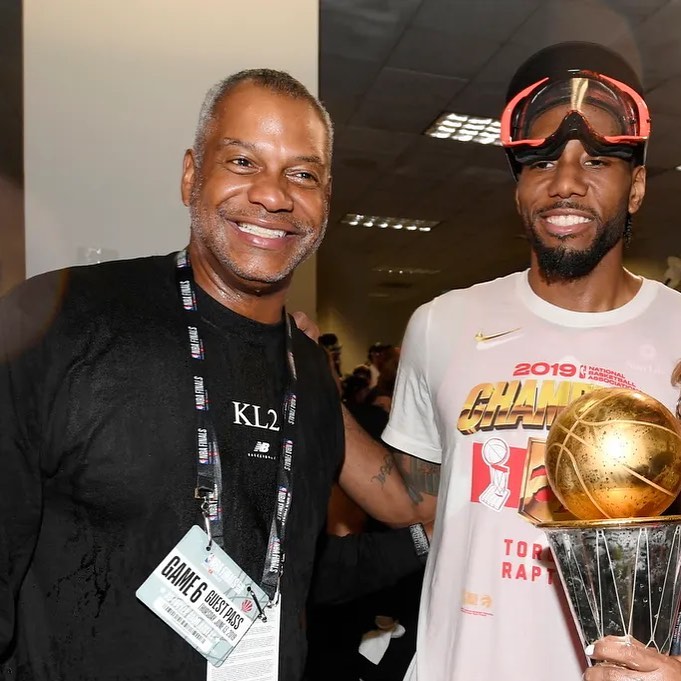 图中左侧为科怀·伦纳德的舅父丹尼斯-罗伯逊